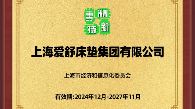 【重大喜訊】愛(ài)舒榮獲上海市“專精特新”企業(yè)認(rèn)證