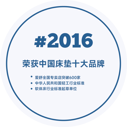 上海愛舒床墊集團(tuán)有限公司,1993年成立于上海。國家床墊,軟床,沙發(fā)標(biāo)準(zhǔn)化起草制定單位之一;中國十大床墊品牌之一;上海寢具品牌排行榜第一。